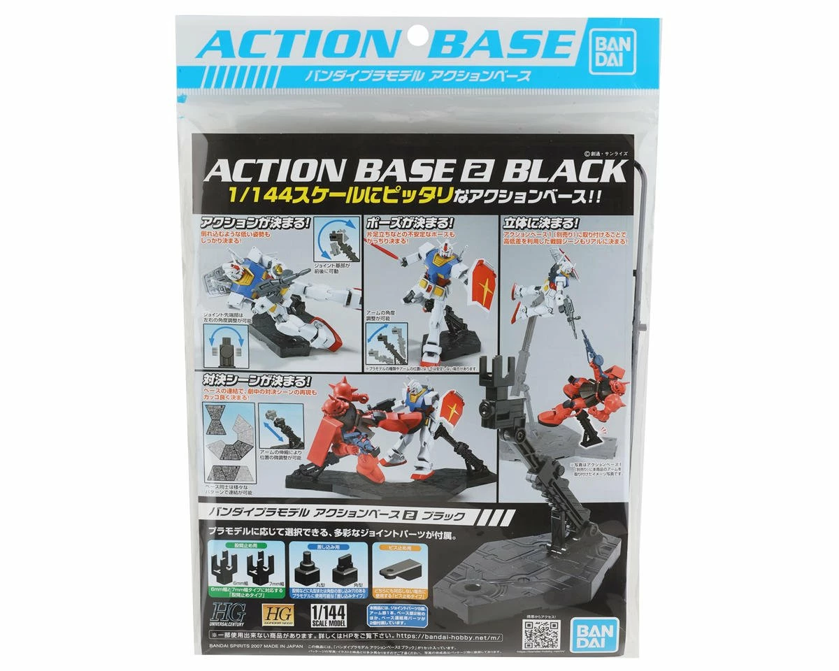 This is the Bandai Spirits Action Display Stand Base 2 1/144. Intended to hold 1/144 scale Gundam models this display stand includes various adapters and holders to fit almost any Gundam kit. The snap together stand is an excellent option to when wanting to display your next Gundam build.