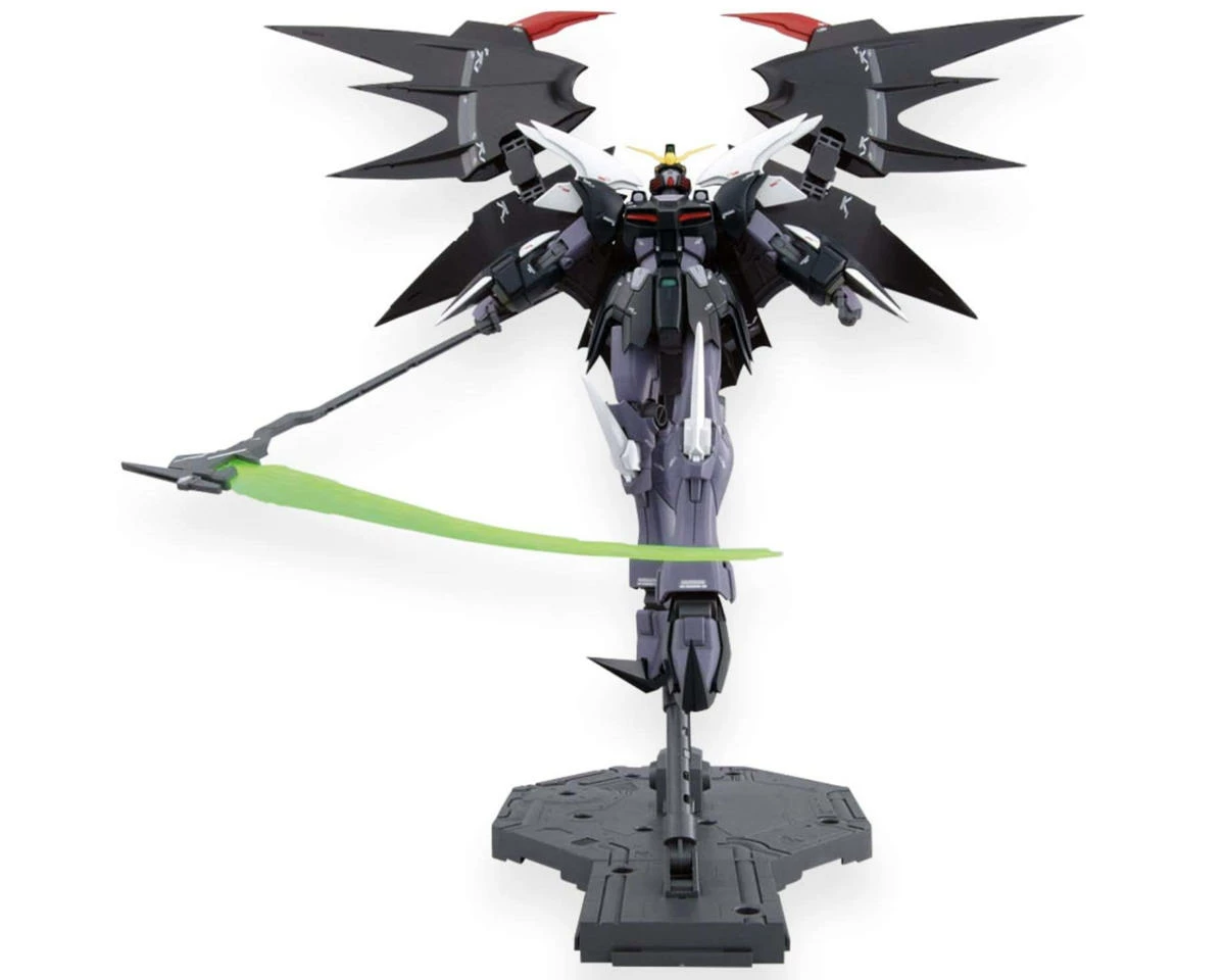 Bandai Spirits Deathscythe Hell EW Gundam Wing 1/100 Master Grade Action Figure Model Kit. Now available as a Master Grade, this version of Deathscythe Hell contains the latest MG technology offering superior plastic engineering, accuracy, and posability. New wing gimmick allows for various extreme poses and contains various warning signs and markings. The Scythe is molded in a bright translucent green plastic and has spots to be slotted into the swappable hands. Additionally the action base connectors are included for aerial posing. Package includes one Deathscythe Hell EW Gundam Wing 1/100 model kit, one sticker sheet and one manual.