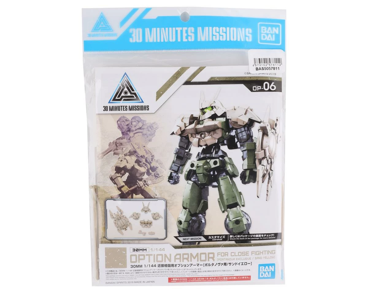 Bandai Portanova Close Quarters Fighting Armor is an optional armor accessory for the Portanova, Sand Yellow Plastic Action Figure Model Kit. These customizable parts for the 30 Minutes Mission series includes visor and shielding for the Portanova, runner and instruction manual.