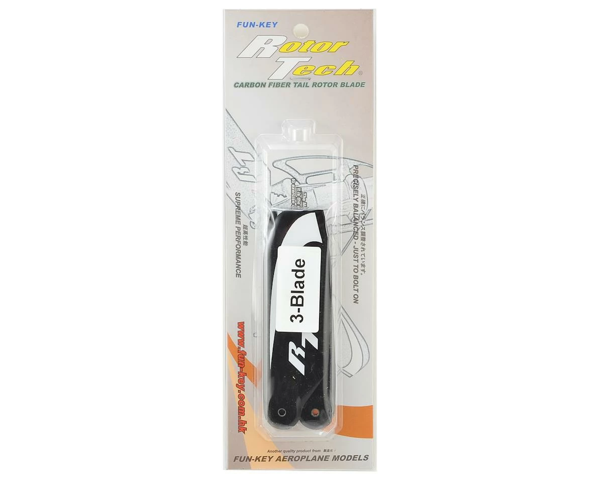 RotorTech blades are finely crafted premium carbon fiber rotor blades from Fun-Key Aeroplane Models. RotorTech blades are designed to be an all around powerful, efficient, well rounded performance oriented blade that will suite a large majority of flight styles from simple aerobatics, F3C, and extreme 3D flight. Additionally, RotorTech blades utilize a minimal amount of paint within the mold, while still providing excellent flight visibility. By using less weight on all of their blades, weight is saved on each set which offers a small boost in performance.