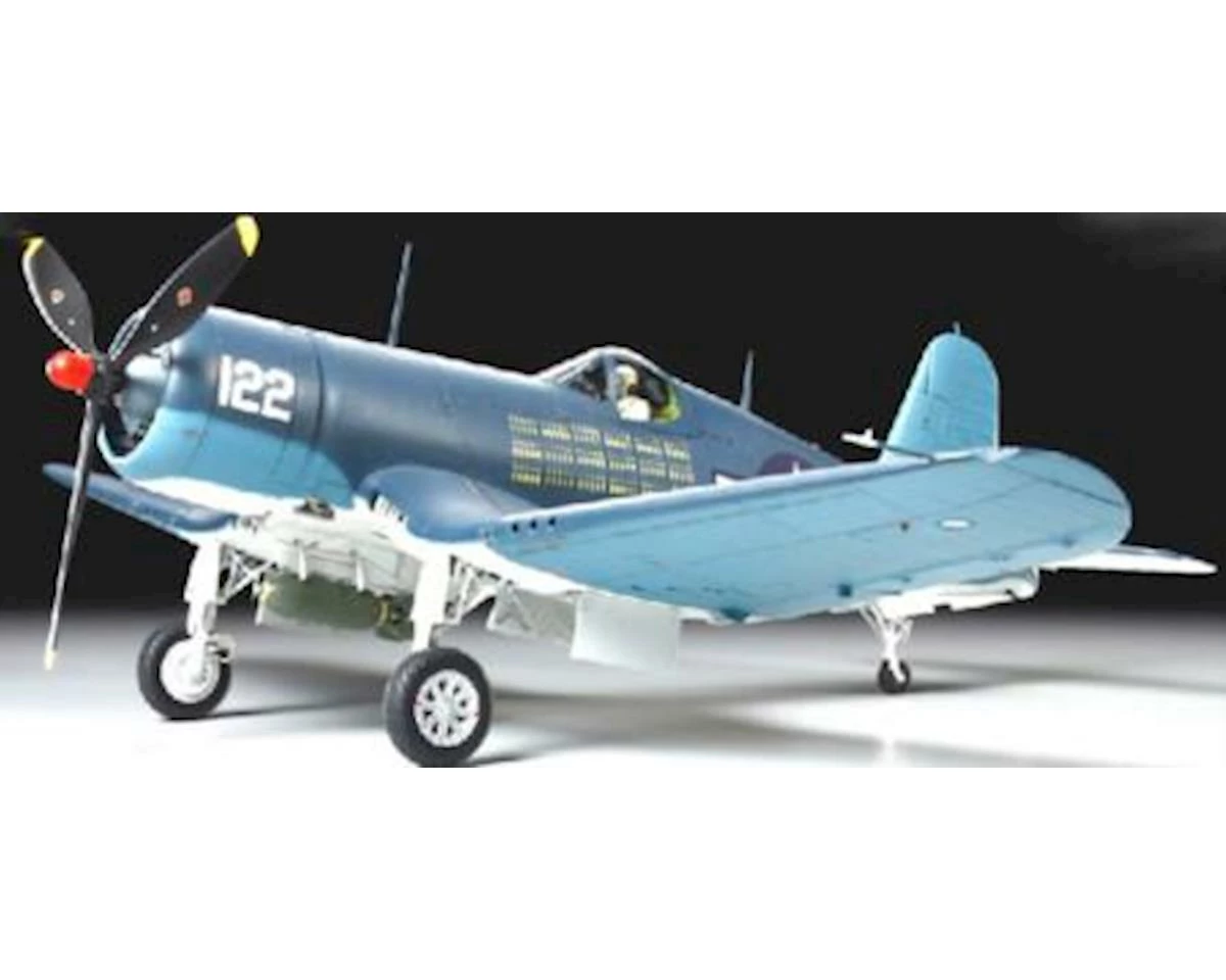 This is a Tamiya 1/32 Vought F4U-1A Corsair, a detailed scale kit of the actual airplane. With a highly complex P&W R-2800 engine generating 2,000hp, a 4-meter propeller and striking gull wings, the Corsair was certainly a memorable aircraft; it was effective, too, and was one of the mainstays of the U.S. Navy. The F4U-1A variant was assigned to units from Summer 1943, and featured upgrades such as a semi-bubble canopy (to improve previously limited visibility), plus the ability to carry bombs of up to 1,000lb. It saw a large amount of action in fighting with the Japanese Navy around the Solomon Islands; the Corsair continued to serve through the Korean War in the guise of further variants, the bomber capability pioneered by the F4U-1A proving a most effective addition to the aircraft’s inherent ability.