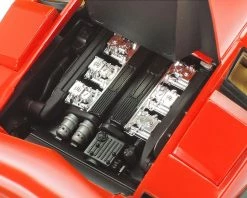 The Tamiya 1/24 Lamborghini Countach LP500S is a red plated version of a modern classic Lamborghini Countach. It recreates the special Countach made for Walter Wolf by Lamborghini, to meet his demands for even greater performance than the LP400 base model. Three in total were produced for Wolf, with features such as five-hole Bravo wheels, wide Pirelli P7s, front spoiler and a rear wing. The final two special models received a 490+HP 5.0L V12 engine.